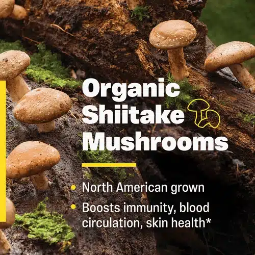 Enzymedica’s Made with Organic D3 + K2 supplement also includes 150 mg of organic shiitake mushroom powder, which delivers additional immune support.* Shiitake mushrooms (Lentinula edodes) are known to enhance the immune system, blood circulation, and health of the skin.*